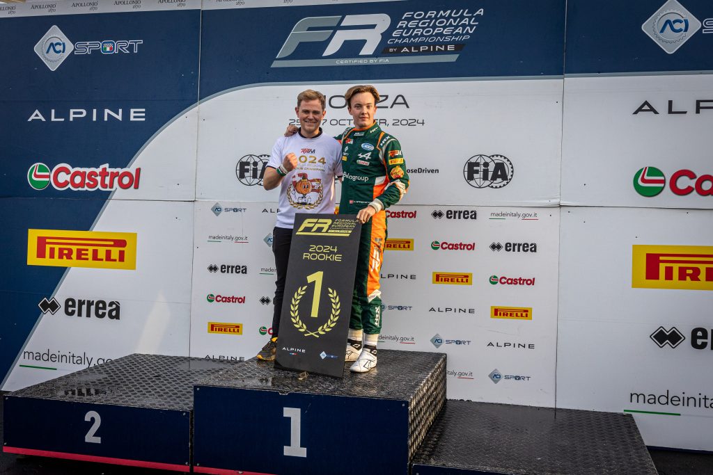 The 2024 season of the Formula Regional European Championship by Alpine comes to a close with another victory for champion Rafael Camara (Prema Racing). The Ferrari Driver Academy driver wraps up his year in the best way possible, cementing his status as the record-holder in this championship. Camara holds the record for wins across the 2023 and 2024 seasons with nine victories, the record for podium finishes with 17, and a total of 309 points this season, the highest single-season tally. It has been a triumphant year for the Prema Racing team, which, in addition to the drivers’ title and the team title, today celebrated the second place in the final championship standings secured by James Wharton, thanks to his third-place finish in Race 2. The bronze medal went to Tuukka Taponen (R-ace GP).