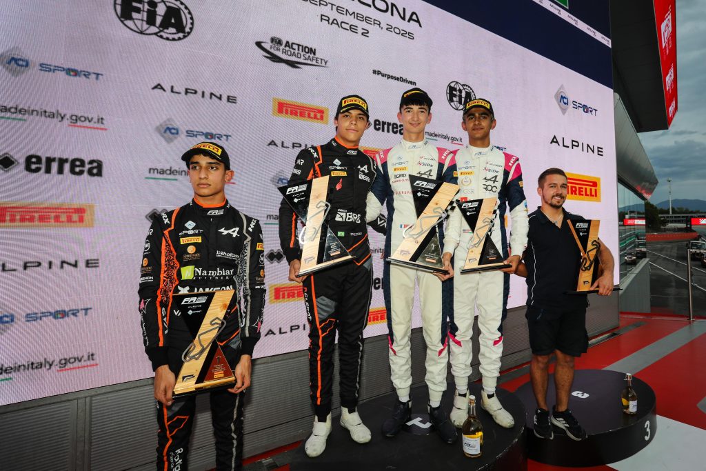 Akshay Bhora also delivered a race to remember. After a strong qualifying session that placed him third on the grid, the R-ace GP driver thrilled fans with a heart-stopping final lap in which he fended off Evan Giltaire (ART Grand Prix) and Freddie Slater (Prema Racing) in a three-way battle for the final spot on the podium. Slater, who briefly moved into fourth and had set his sights on Bhora’s position, lost ground at Turn 12 and slipped back to fifth at the finish. The British driver still collected important points, which now see him tied at the top of the championship standings with De Palo, both on 226 points.